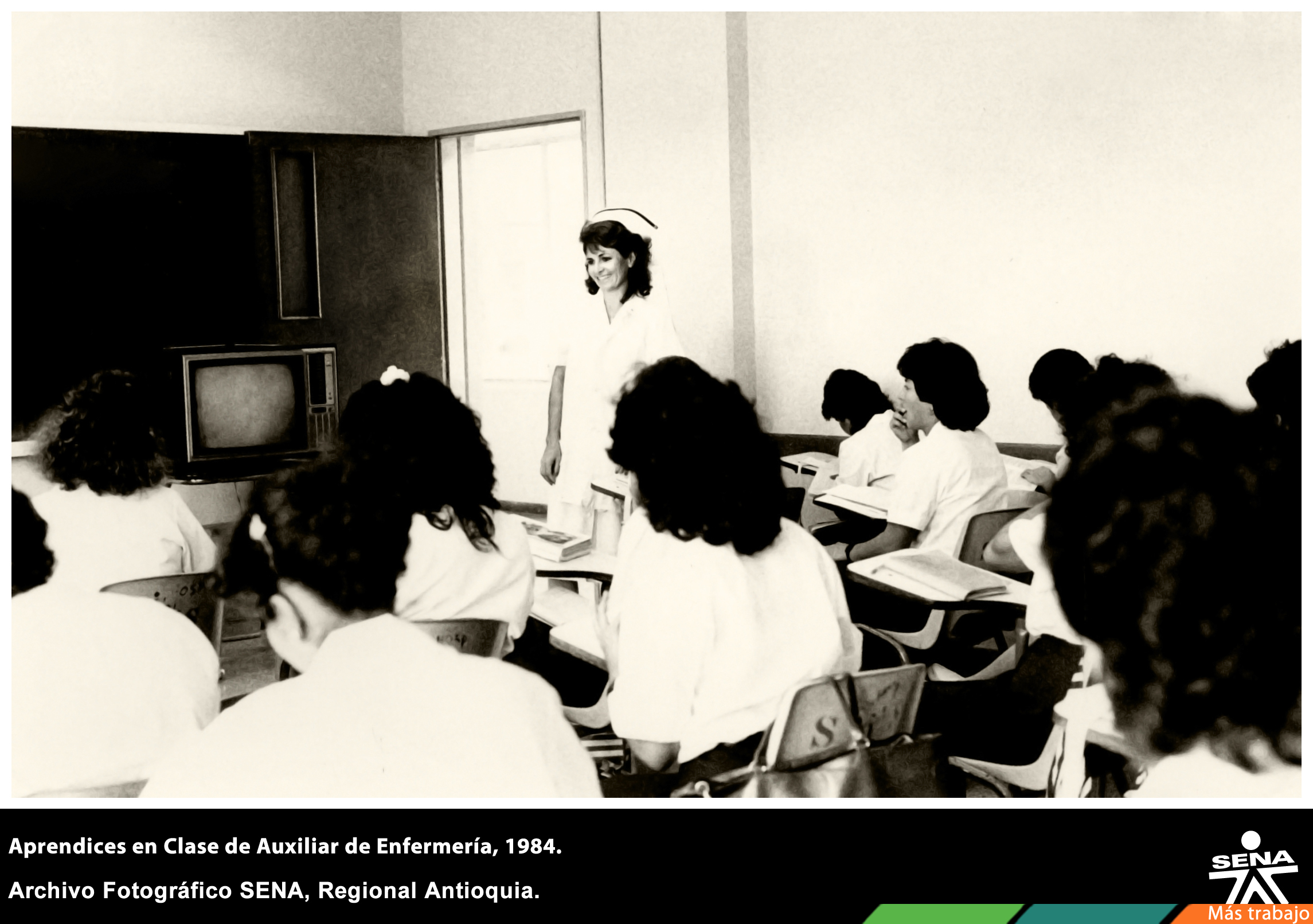 Instructora del Centro de Servicios a la Salud en clase con las aprendizas del curso de auxiliar de enfermería.