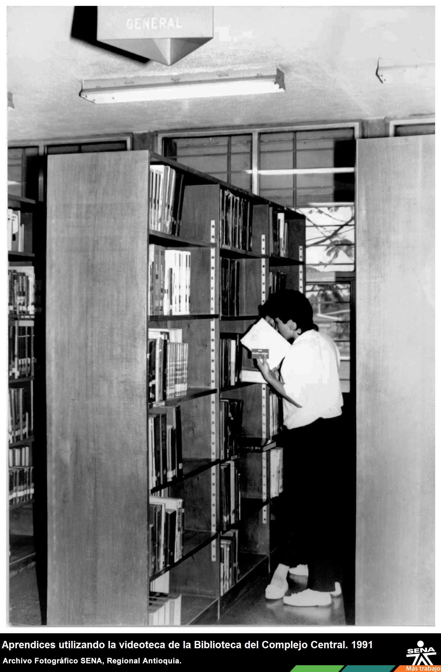 Aprendices utilizando la videoteca de la Biblioteca del Complejo Central
