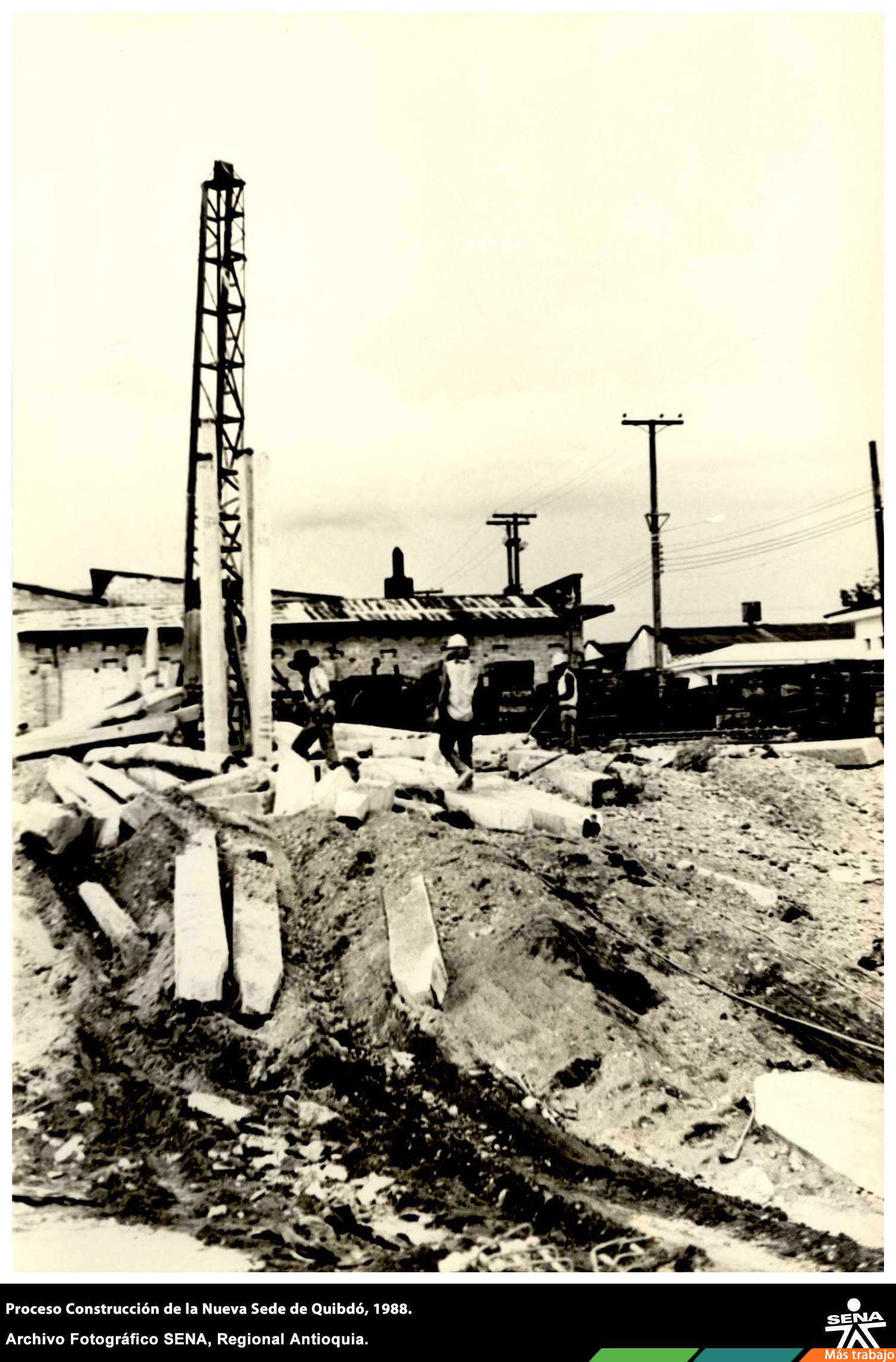 Trabajadores durante el proceso de Construcción del Centro Múltiple de la Seccional en Quibdó el cual se inauguró en junio de 1990.