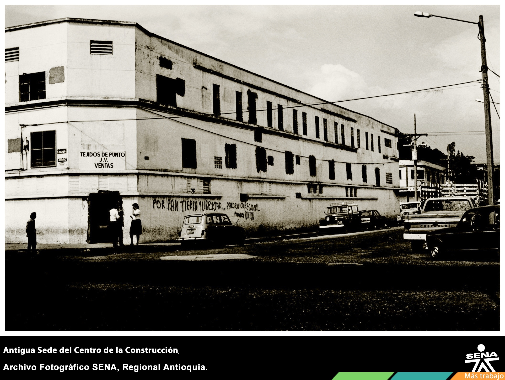 Fachada de la sede del Centro de la Construcción. En 1970 se arrendó este local de propiedad del Seminario Conciliar de Medellín. En 1979 se inauguró la sede en el Complejo Norte del Barrio El Pedregal.