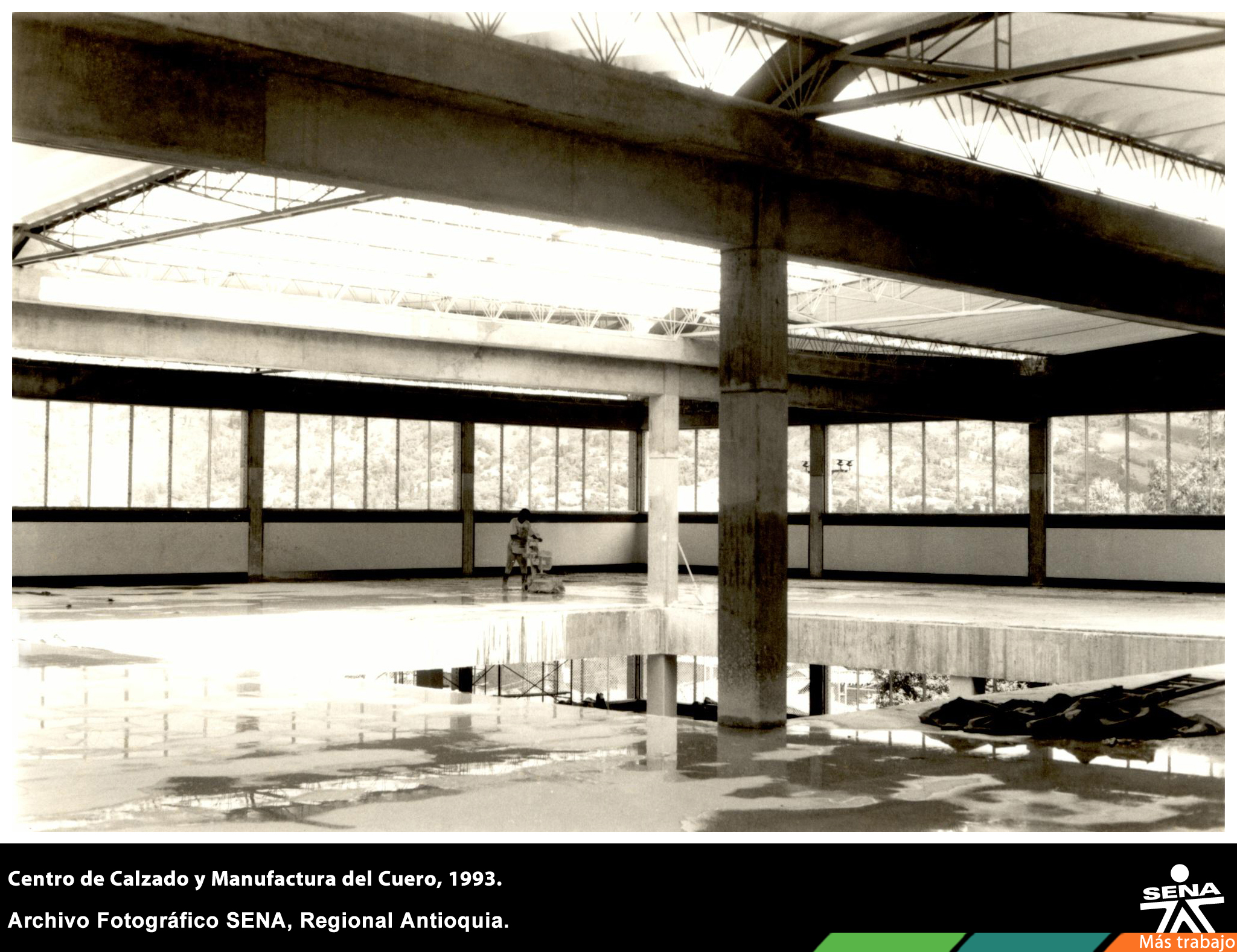 Interior de la sede del Centro de Calzado y la Manufactura del Cuero durante su construcción, en el municipio de Itagüí, Antioquia.
