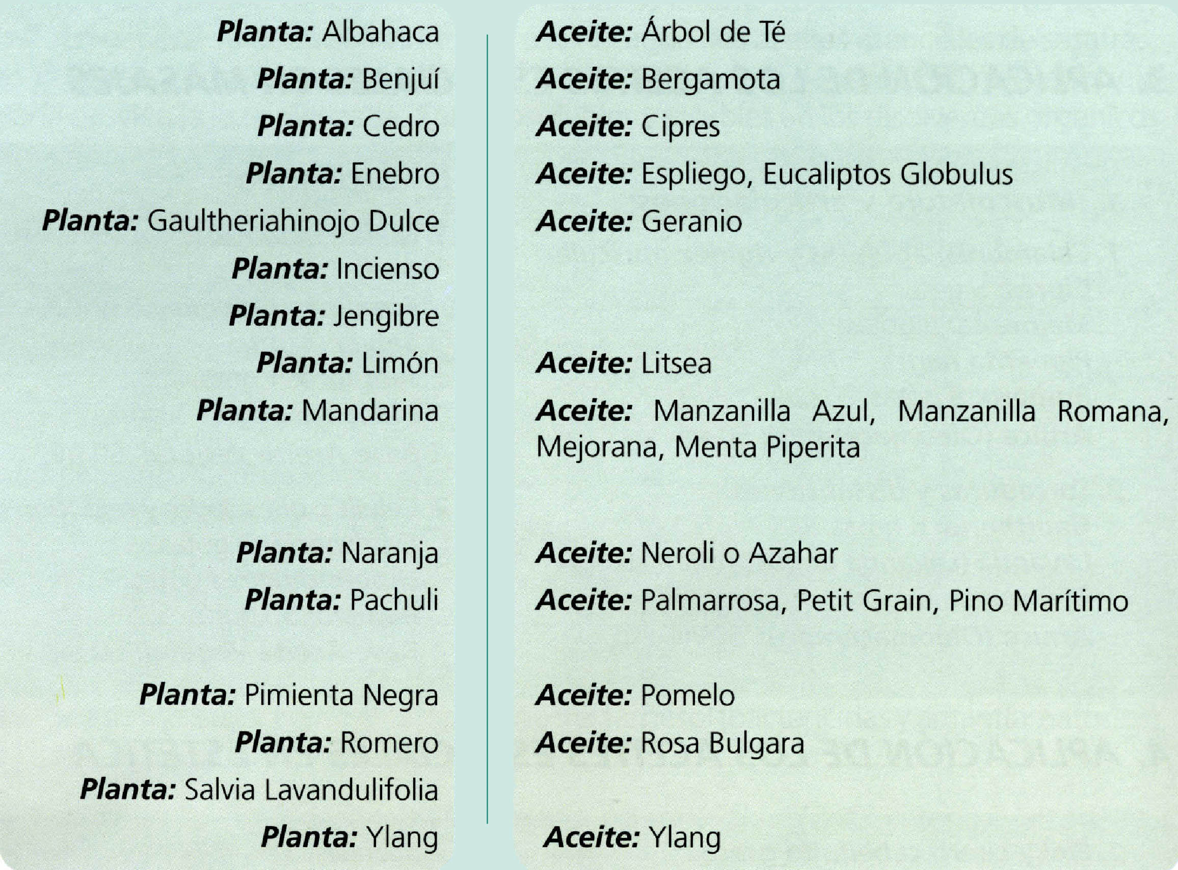 • Sistema nervioso: Tensión nerviosa y enfermedades relacionadas con el estrés. Combina bien con: Benjuí, bergamota, ciprés, incienso, enebro, lavanda, limón, romero. Toxicidad: No tóxico, no irritante, no sensibiliza.
