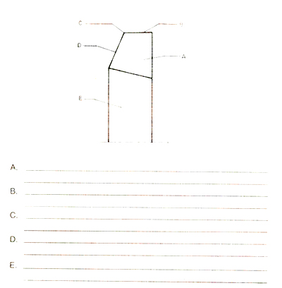 AFILADO DE BURILES PARA CILINDRAR Y DE FORMA EN AFILADORA UNIVERSAL PRUEBA No. 5 Dados los listados (A y B) de los pasos en desorden del proceso de afilado de buriles para cilindrar en afiladora universal. Usted deberá escribir el orden lógico de los pasos que correspondan a cada operación colocando en las líneas los números correspondientes, según el orden establecido en las hojas de operación. A. 1. Rectifique hasta limpiar la cara. 2. Posicione la fase lateral. 3. Monte y rectifique la muela. 4. Verifique los ángulos obtenidos con calibradores de ángulos. 5. Monte la prensa universal y fije la herramienta. 6. Desplace la muela verticalmente. 7. Ponga la máquina en funcionamiento. 8. Coloque el anillo graduado en "O”. 9. Limite el curso de la mesa manualmente y fije los limitadores. 10. Rectifique hasta la dimensión indicada. 11. Corrija la inclinación de la mesa si es necesario. 12. Posicione la cara 2a. lateral.