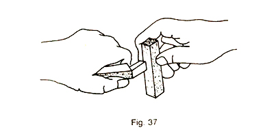 e. Termine el filo con piedra manual de afilar (Fig. 37).