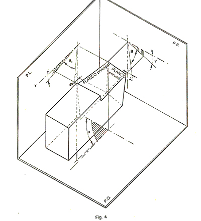 en la figura 4, están determinados según tres planos, correspondientes a tres caras del paralelepípedo que forman el cuerpo de