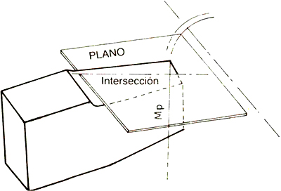 corte y perpendicular a la intersección con la cara superior y un plano