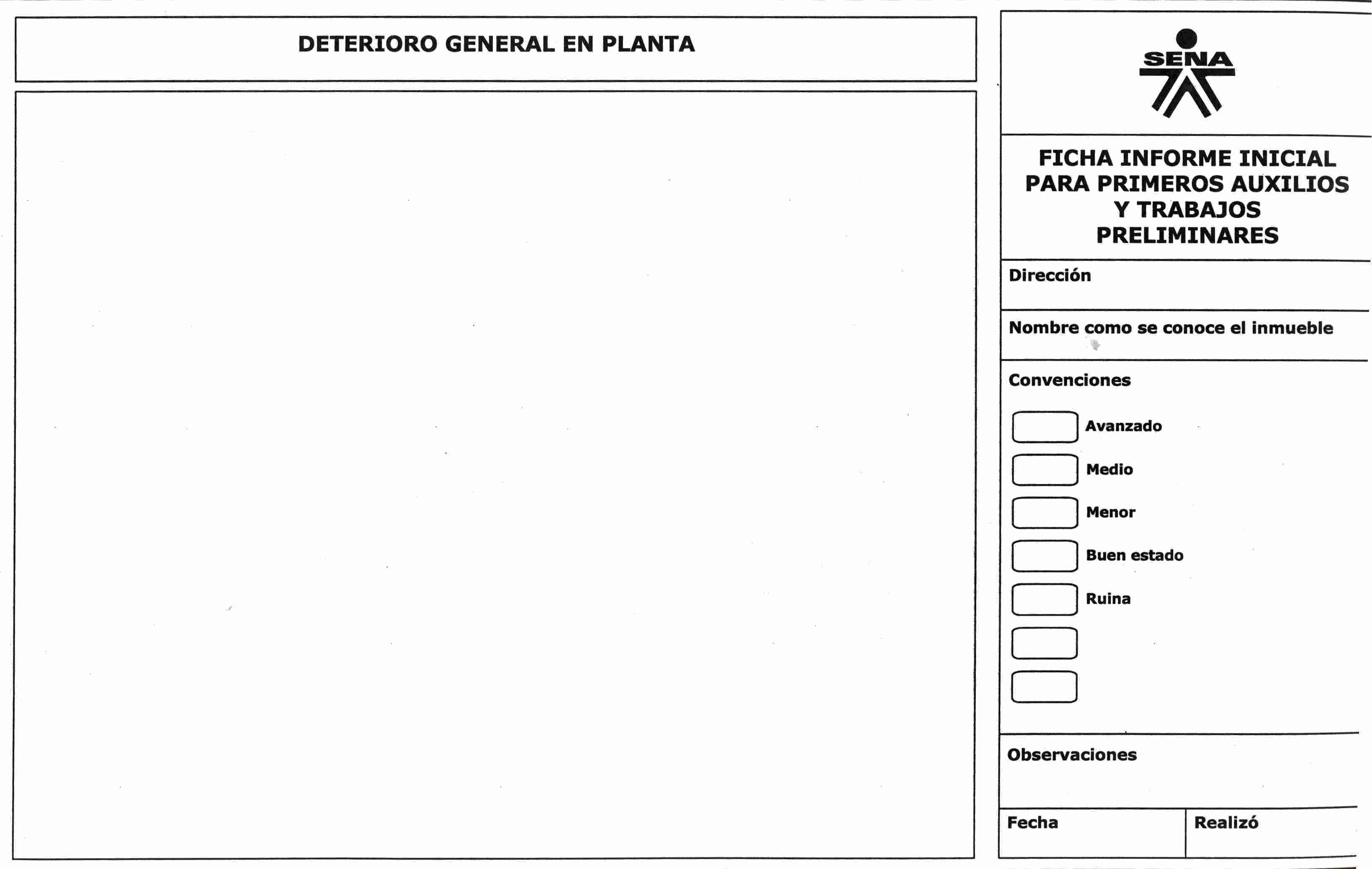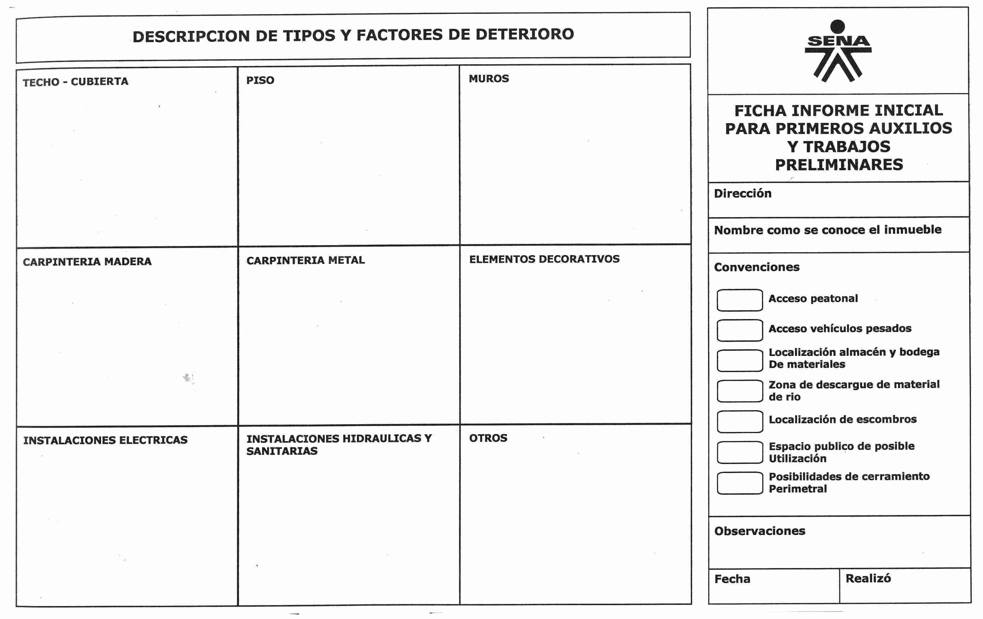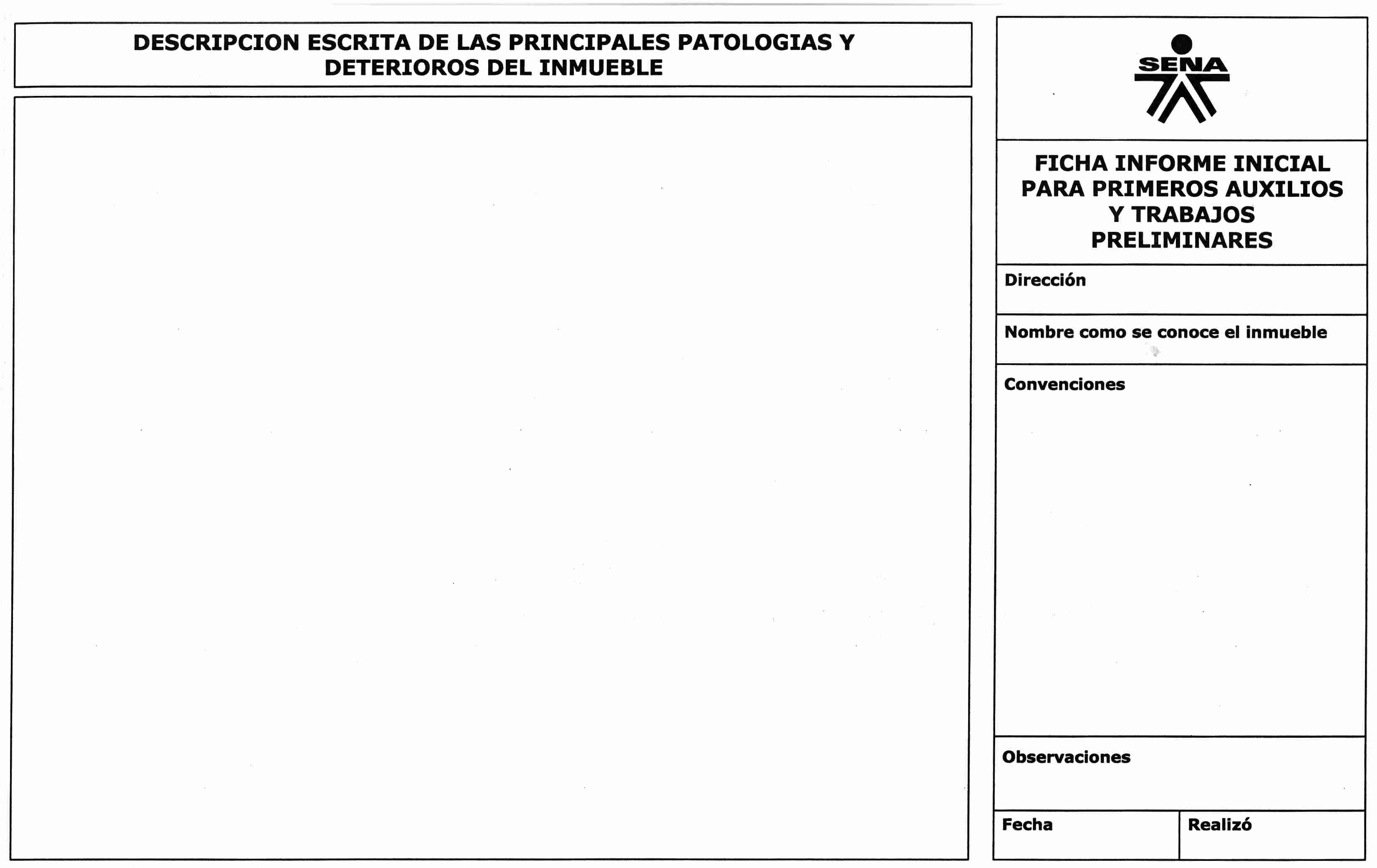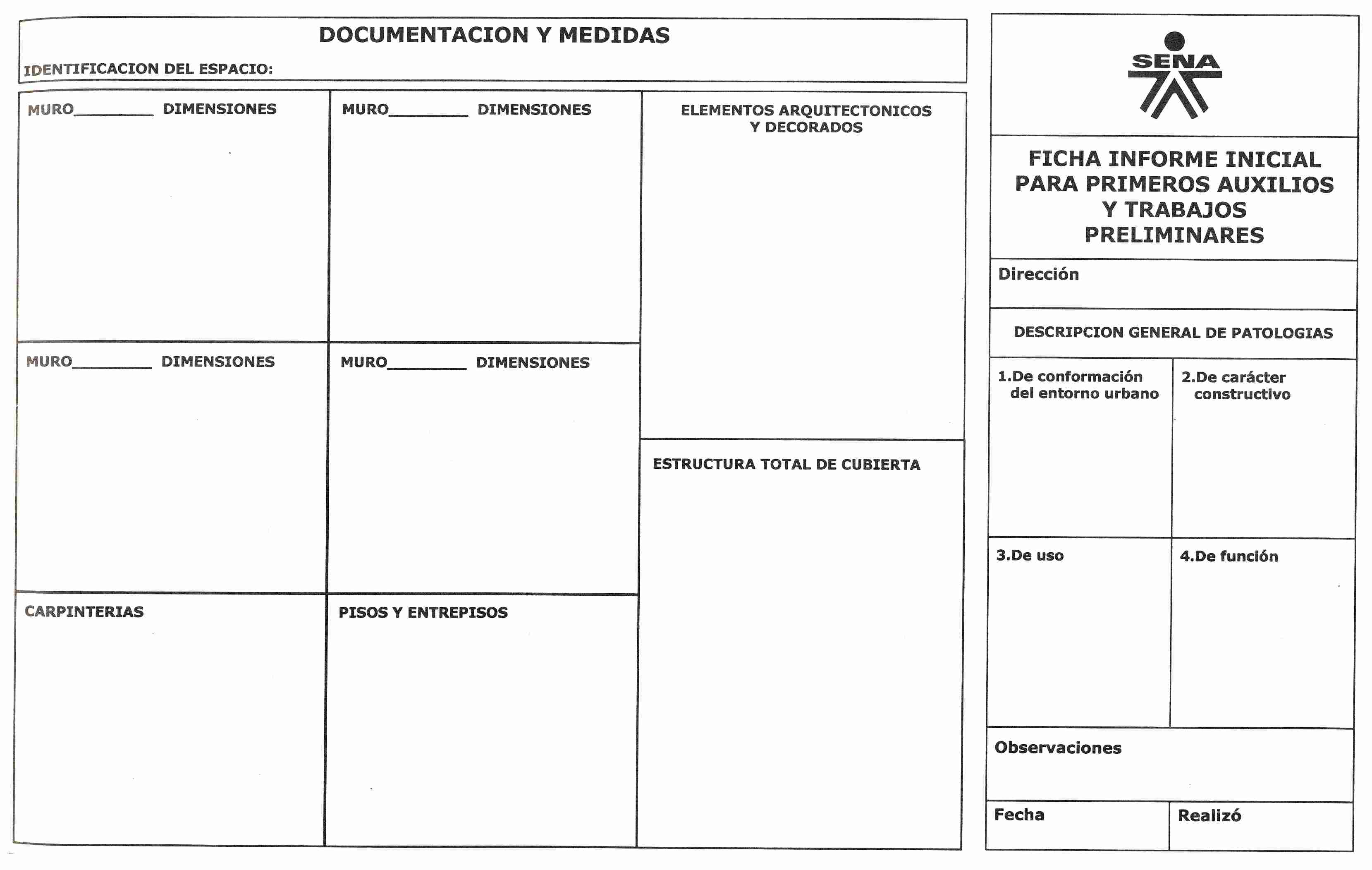 Igual sucede con los espacios y elementos que han sido abandonados. Tanto los unos como los otros pueden estar incidiendo en alguna o algunas patologías que presente el inmueble. Estudiado y entendido lo anterior, el maestro debe realizar un cuidadoso informe sobre cada espacio, que