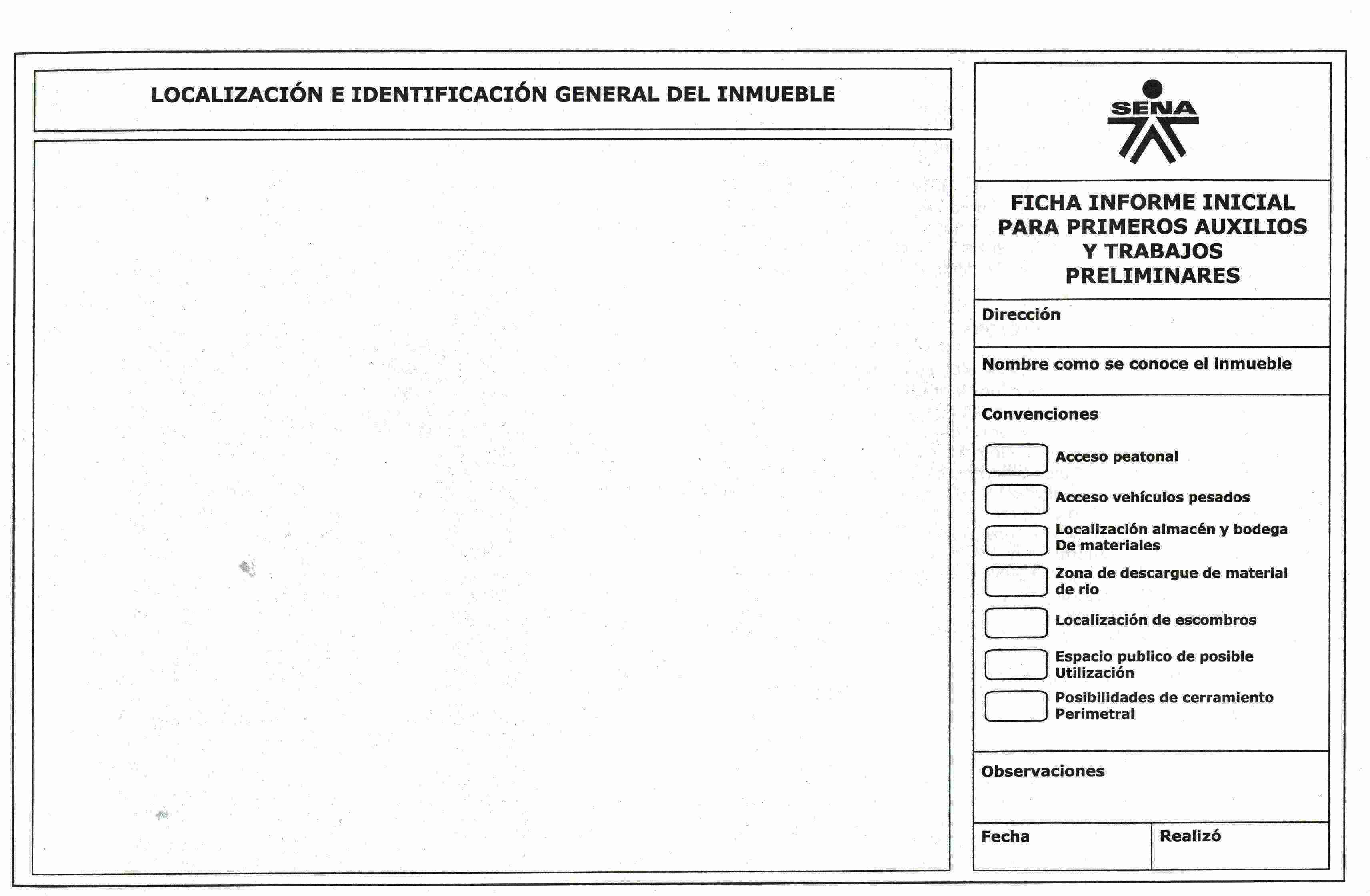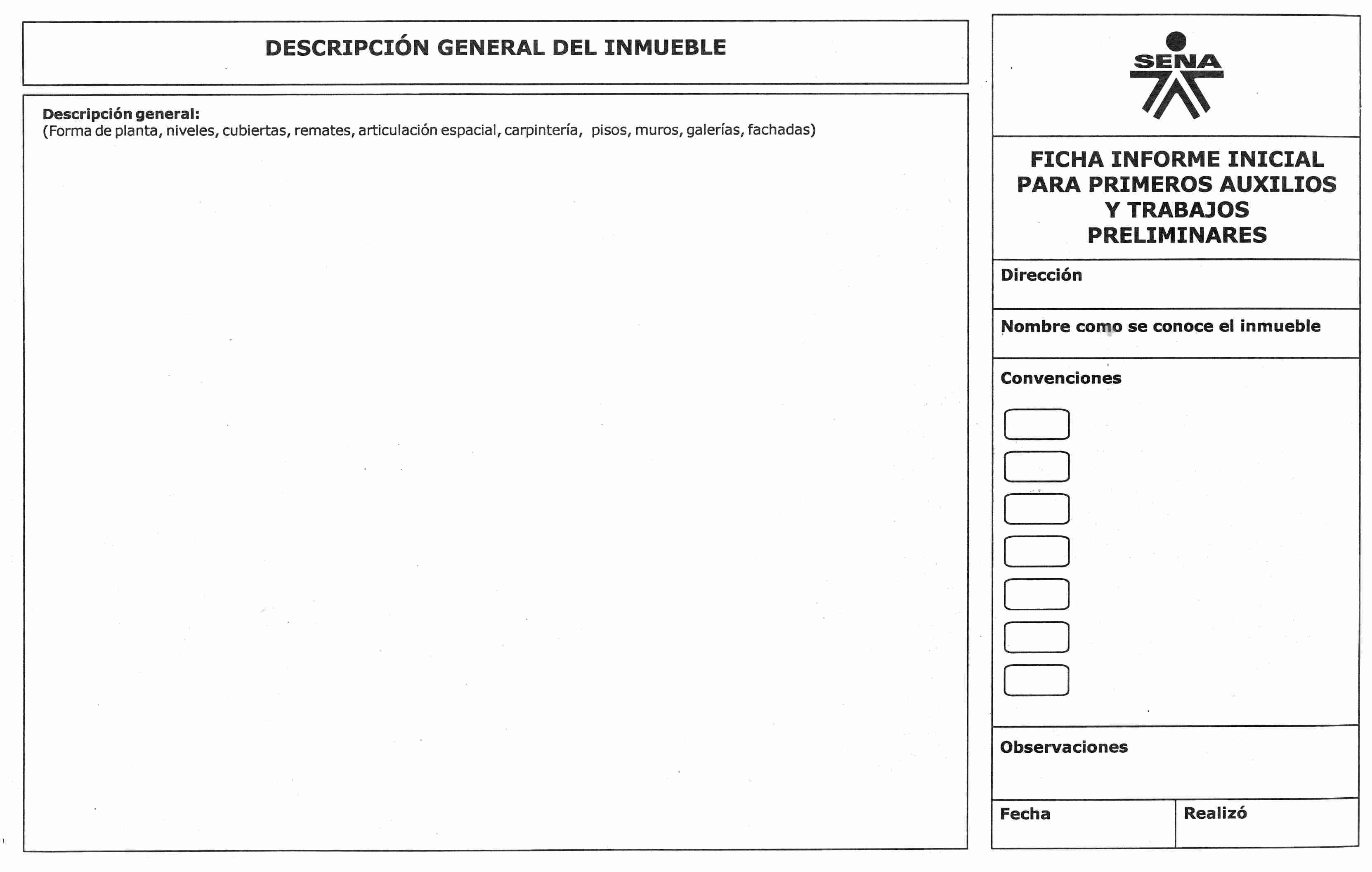 La cartilla desarrolla el proceso de los trabajos a realizar en las obras de primeros auxilios y trabajos preliminares. Para mejor compresión de todo el proceso a seguir es conveniente estudiar conjunta la cartilla de “Apuntalamiento de elementos estructurales y no estructurales, protección de la edificación y elementos a intervenir en la obra” con la cartilla “Limpieza y protección de la edificación, construcción o adecuación de espacios provisionales para el desarrollo de la obra a intervenir".