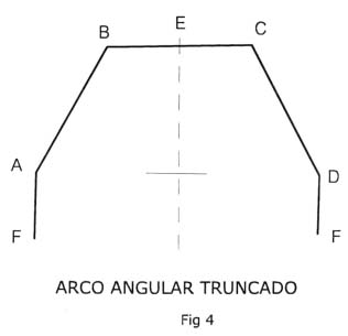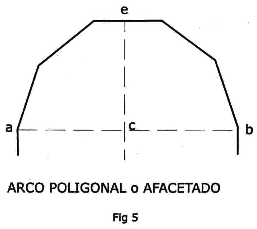 Está formado por una línea quebrada en zig-zag, derivada de una polígono regular inscrito en una circunferencia tangente a los estribos. El trazado se efectúa como sigue: Una semicircunferencia con radio igual a la semiluz, construida sobre la línea de arranque, se divide en un número de partes iguales 12 en la figura y se trazan los radios que pasan por las divisiones.