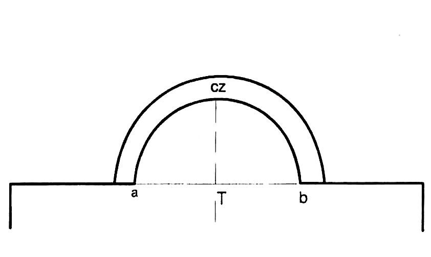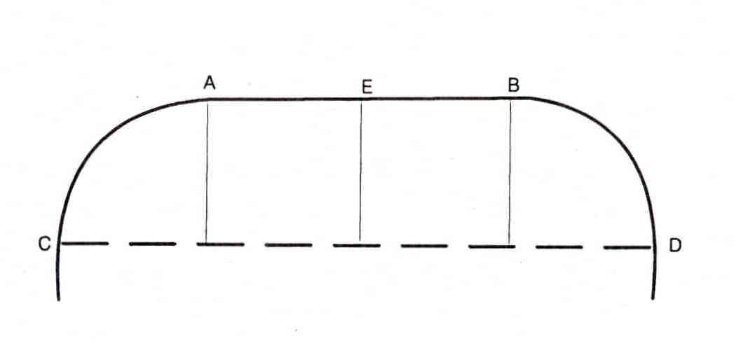 Está formado por un arco de circunferencia de flecha menor a la semiluz. Por lo tanto su centro estará siempre por debajo de la línea de arranque A-B.