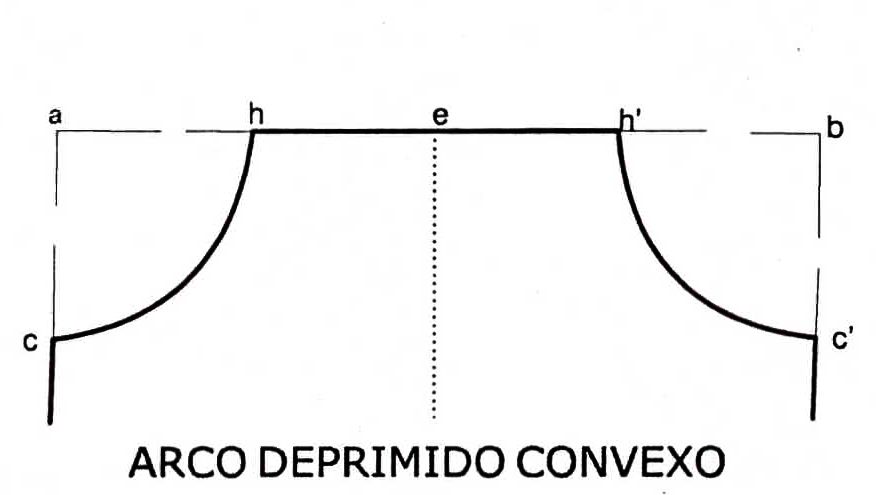 Al igual que el cóncavo, es un arco adintelado en cuyas esquinas a y b se trazan cuartos de circunferencias con centro de dichas esquinas y con radio igual o menos al cuarto de la luz.