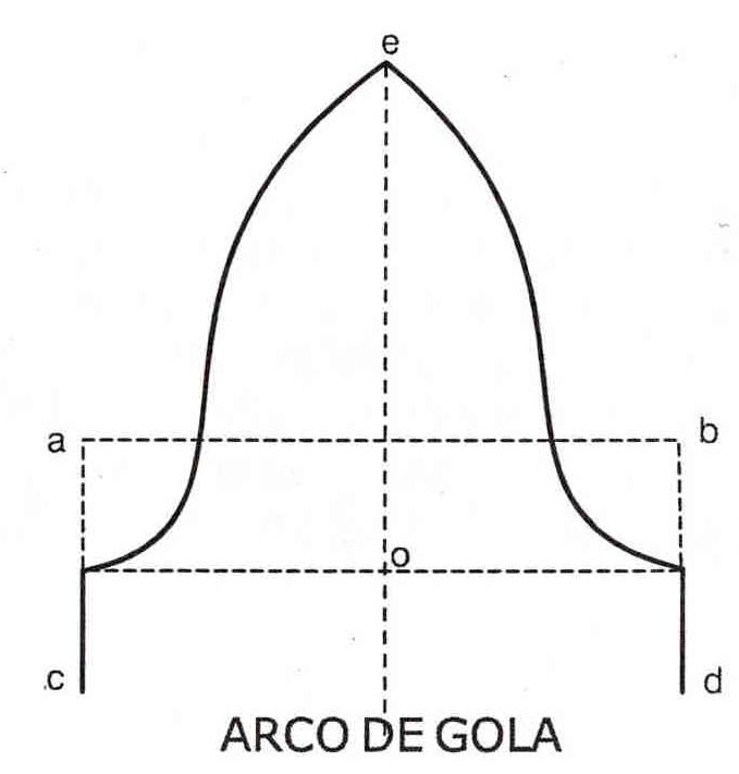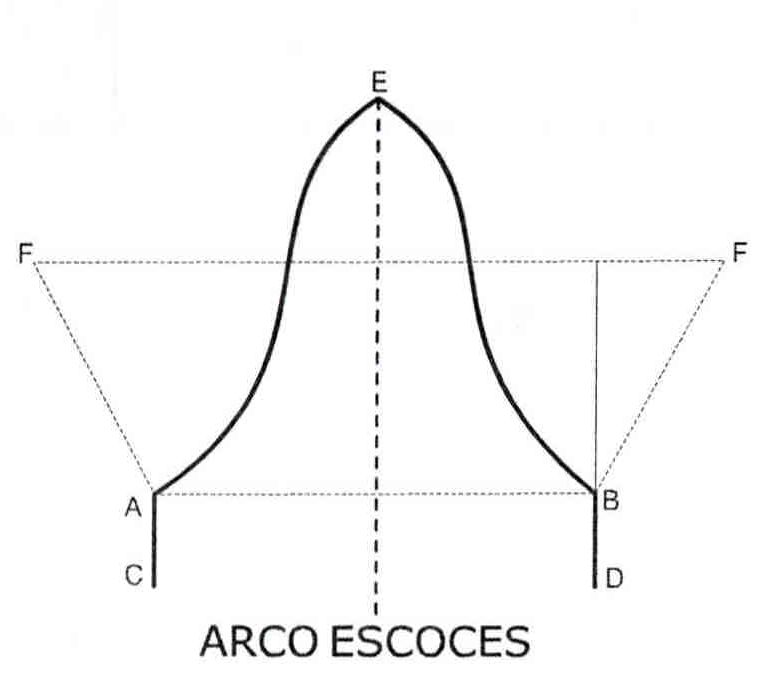 Es un arco de forma semielíptica. Si se puede elegir libremente la flecha, puede trazarse una curva muy aproximada a la semielipse de ejes en relación de 3 a 4,