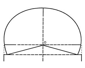 Es una semicircunferencia. Como es lógico, su flecha OE es igual a la semiluz OA u OB.