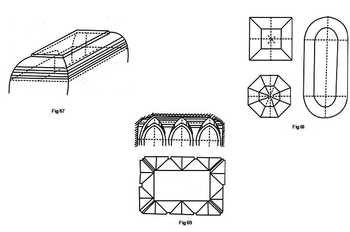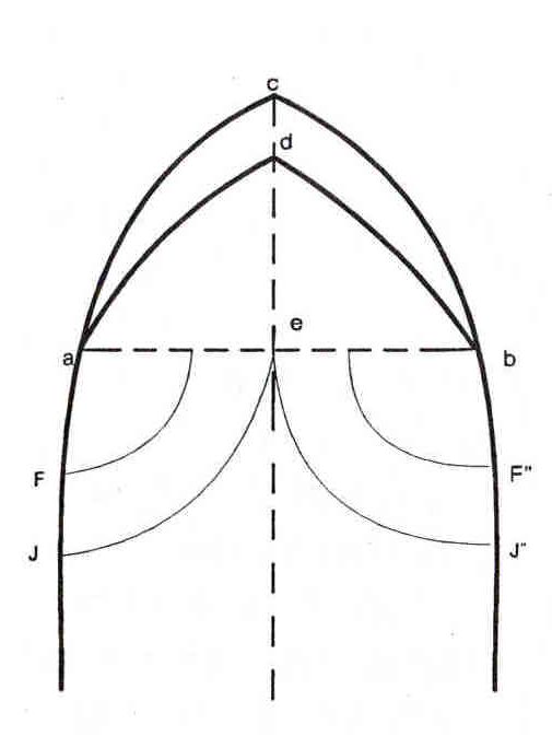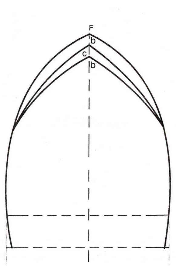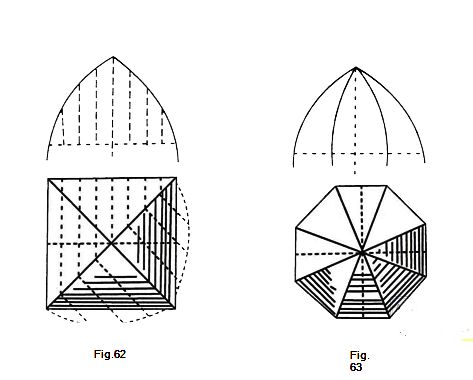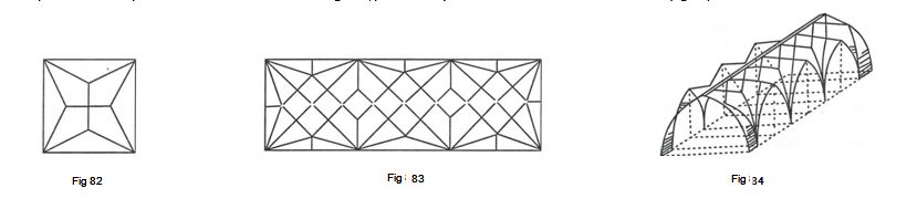 La forma fundamental de la bóveda puede derivarse del arco apuntado (fig.85), de medio punto, carpanel (fig.86), rebajado, etc.... En todo caso, los témpanos entre los nervios deberán ser lo más semejantes posibles.