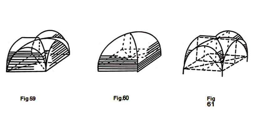 La bóveda vaída se arma como indica la figura 122, disponiendo una cimbra principal a lo largo de una diagonal del cuadrilátero que hay que cubrir, completándose conforme la mencionada figura.