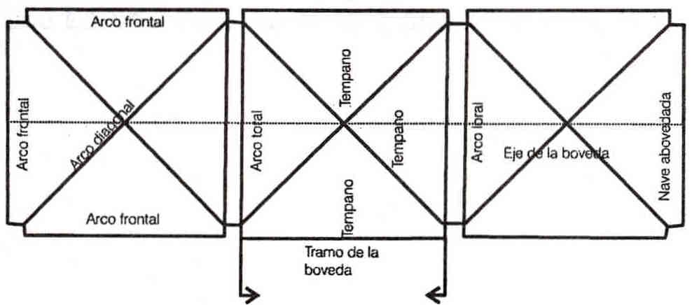 Es la bóveda por arista románica (fig.73). Las claves de los arcos frontales están enlazados a la clave de los arcos diagonales por un arco rebajado y los témpanos resultan curvados. El peralte suele ser de 1/20 a 1/30 de la luz del arco diagonal.