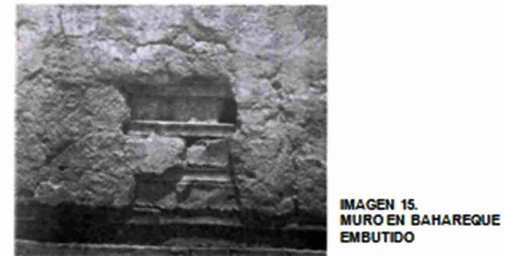 Para el caso específico de éstos sistemas constructivos en bahareque, se anota particularmente la presencia generalizada de "sobrecimientos", construidos en muros de mampostería simple (no reforzada) de ladrillo cocido, especialmente para los muros exteriores y de fachada, a manera de "zócalos"; construidos en pega tipo soga, es decir, los ladrillos acostados y trabados en una sola dirección