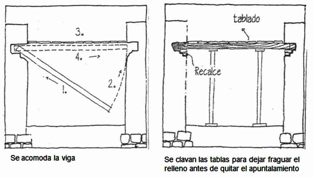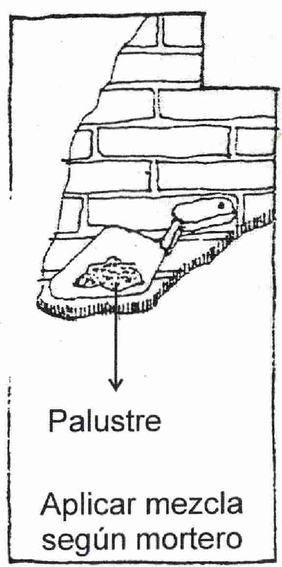 Se limpia toda la superficie quitando los sobrantes y alto relieves que puedan afectar la perfecta instalación de las nuevas piezas. Las nuevas piezas, usar morteros epóxicos especiales (Ver cartilla de aditivos), o emplear morteros de cal arena, o cemento arena, según sea el caso, en una proporción que por lo general es 1:3.