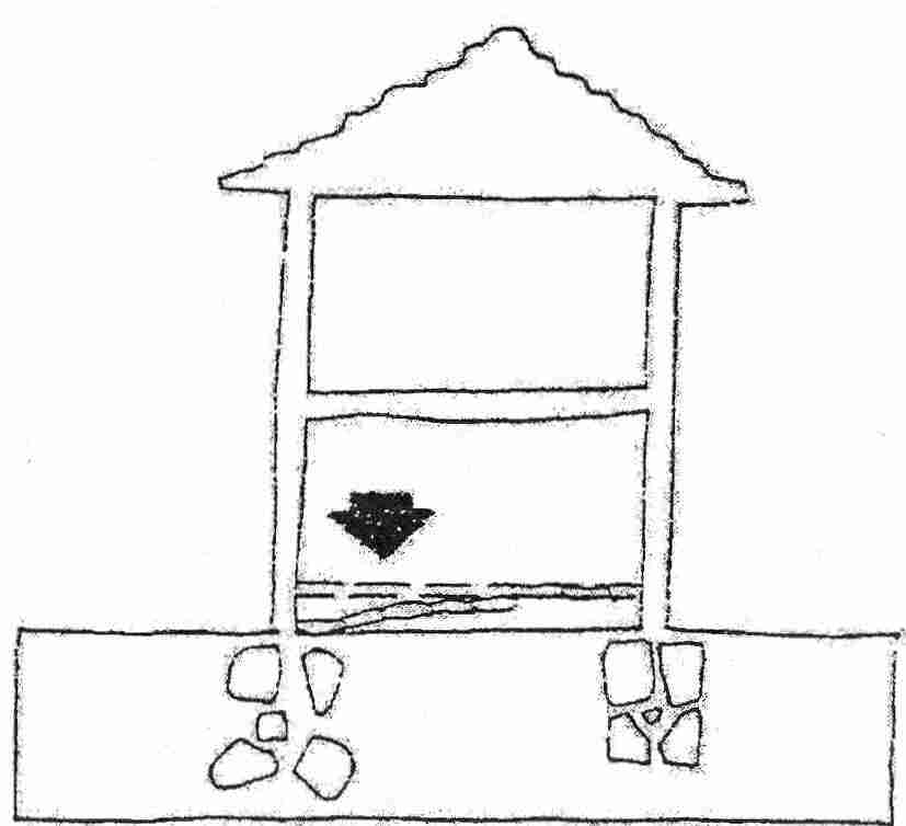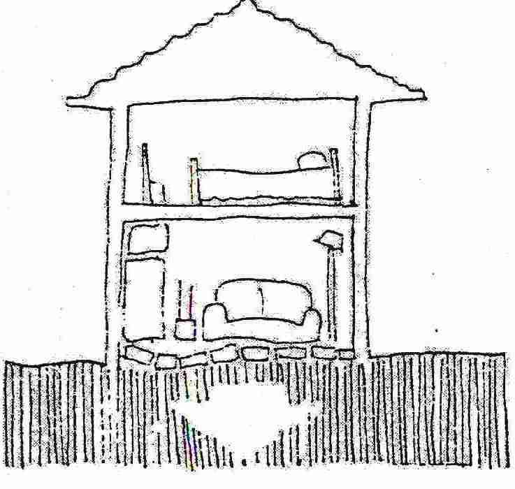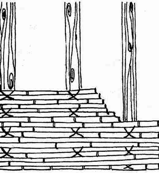 Los entrepisos elaborados con madera rolliza se elaboran con elementos desbastados un poco en la parte superior de la posición final a quedar. Sus dimensiones están entre 14 y 20 cm, pero en casos aislados se han encontrado de superiores dimensiones.