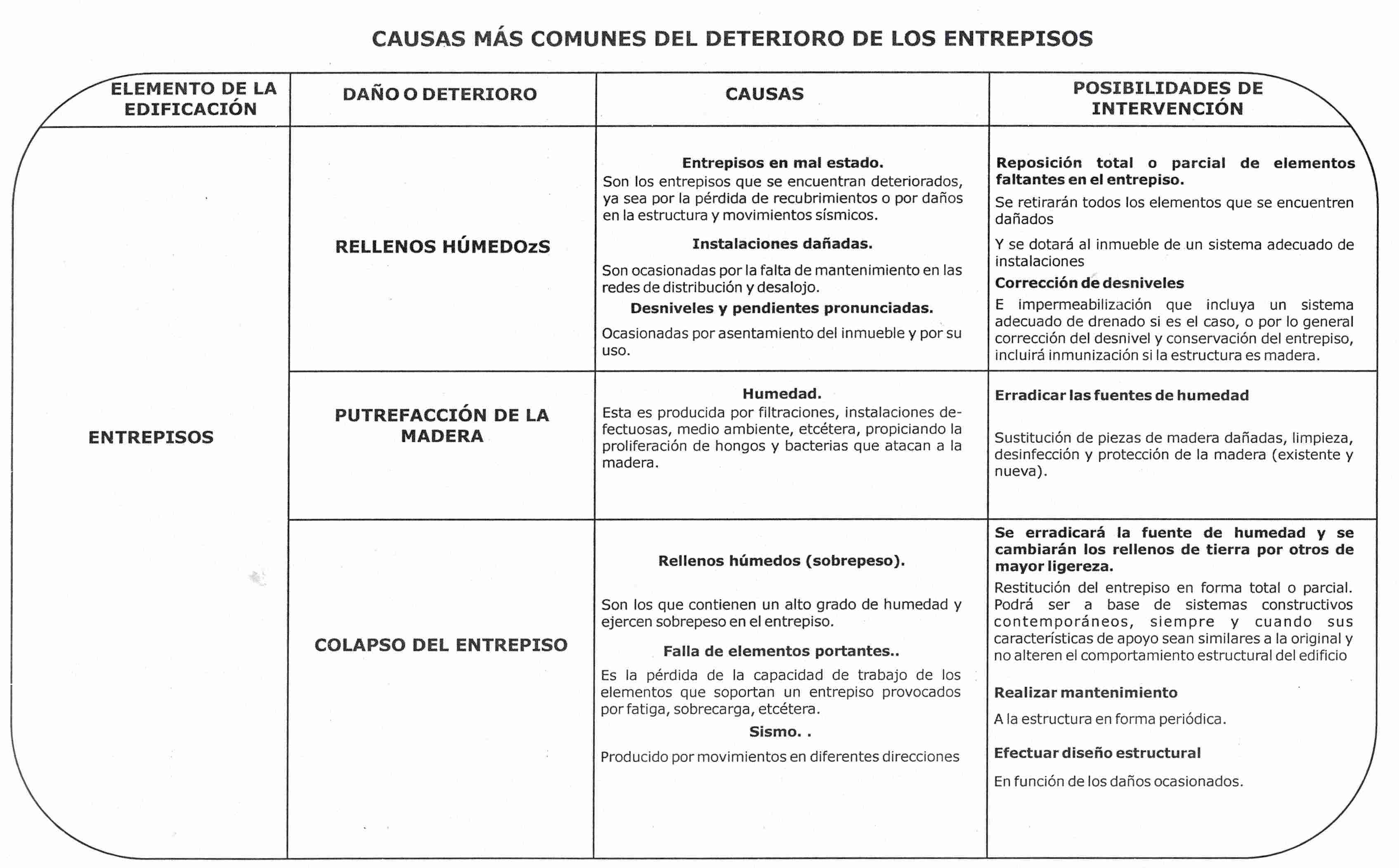 Los elementos estructurales de un entrepiso pueden ser vigas de concreto presentes en algunos edificios de la Época Republicana o entramado de viguetas instaladas sobre una placa de concreto posteriormente se instala el piso de madera, cerámica, baldosa de cemento, mármol, etc.