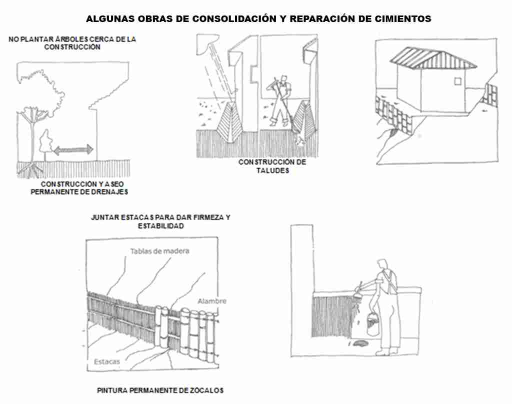 Obras de primeros auxilios:(Estas obras se estudian y profundizan en las cartillas de Limpieza, protección y adecuación de espacios o la cartilla de Apuntalamiento y protección de la edificación).