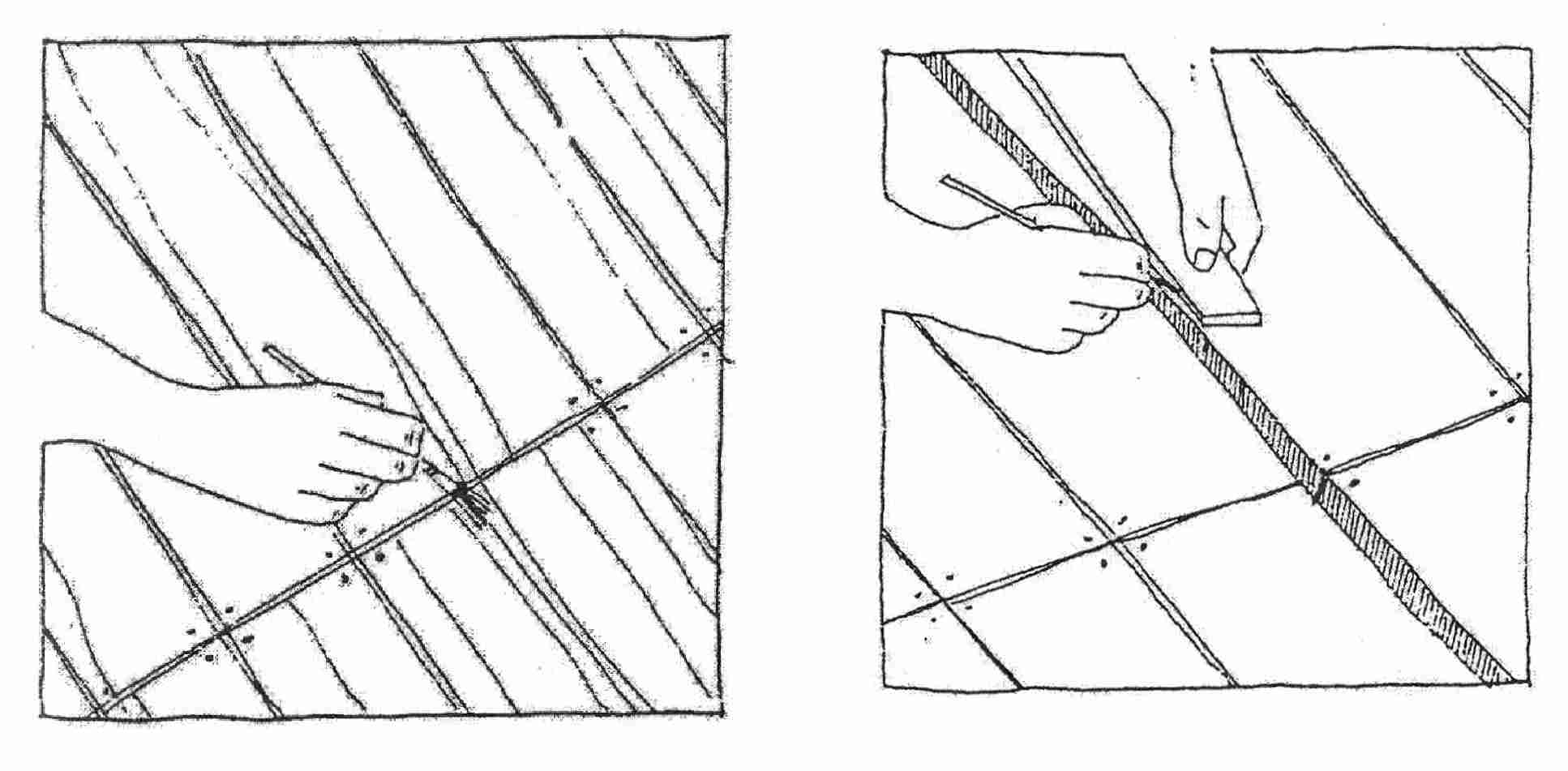 El pedazo de madera se corta de las dimensiones que tenga la fisura y se introduce en la grieta de modo que exista cierta presión para llegar a su sitio es recomendable que antes de instalar el pedazo de nueva madera, se impregne de Carpincol en los bordes de la madera, para dar estabilidad a la pieza. Por último se pasa un cepillo y lija fina para dar acabado liso.