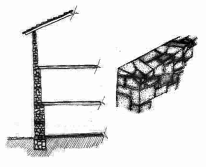 Salientes delgadas de concreto endurecido, que se proyectan en el exterior del muro. Efecto desigual en el acabado.