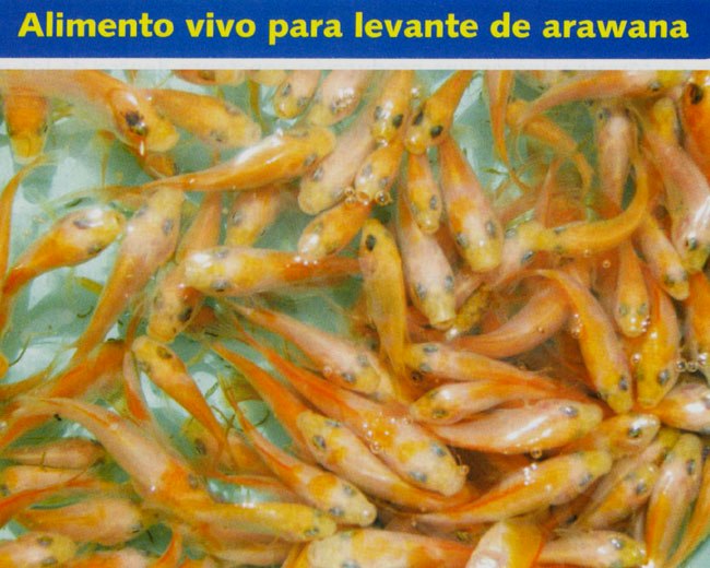 Cuando se suministra pescado fresco entero, mediante la producción y sacrificio de alevinos o ejemplares juveniles de peces de forraje, se deben seleccionar adecuadamente las medidas, de acuerdo al tamaño de la boca de los arawanas. Con anterioridad a la captura y sacrificio, los peces de forraje son alimentados con concentrados balanceados de 40 a 45% de proteína bruta, con el objeto de mejorar el aporte nutricional de este tipo de alimento.