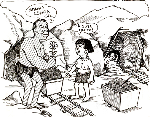 y después, en la época de la Colonia, los españoles trajeron de África a nuestras tierras, esclavos de raza negra para trabajar en las minas.