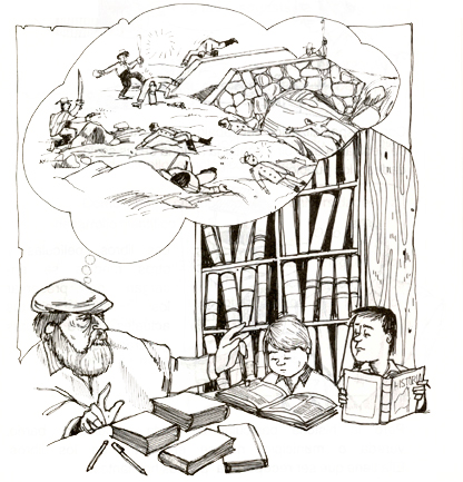 Con la invención del papel, la escritura alfabética y la imprenta, la historia deja de ser contada por los mayores y empieza a transmitirse a través de los libros.