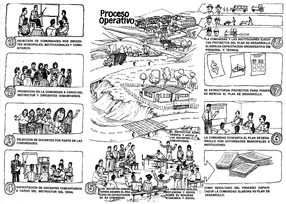 6. Esta metodología, que recoge las experiencias de trabajo del SENA y de otras instituciones con las comunidades urbanas y rurales, es un desarrollo teórico inacabado que debe confrontarse en la práctica para perfeccionarlo con el aporte de las instituciones y de las comunidades.