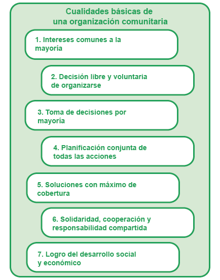 Pero para lograr la participación efectiva de los miembros de una comunidad, en la solución de sus necesidades, se requiere una organización con las cualidades básicas que aquí se han mencionado.