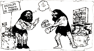 Este producto hacía en esa época el papel que después hizo el oro, como moneda. En este caso los otros productos eran las mercancías, es decir, bienes que se cambiaban por el producto particular que hacía de medio de cambio. Con el tiempo, los grupos se especializaron mucho más: Agricultores, ganaderos, artesanos, guerreros...
