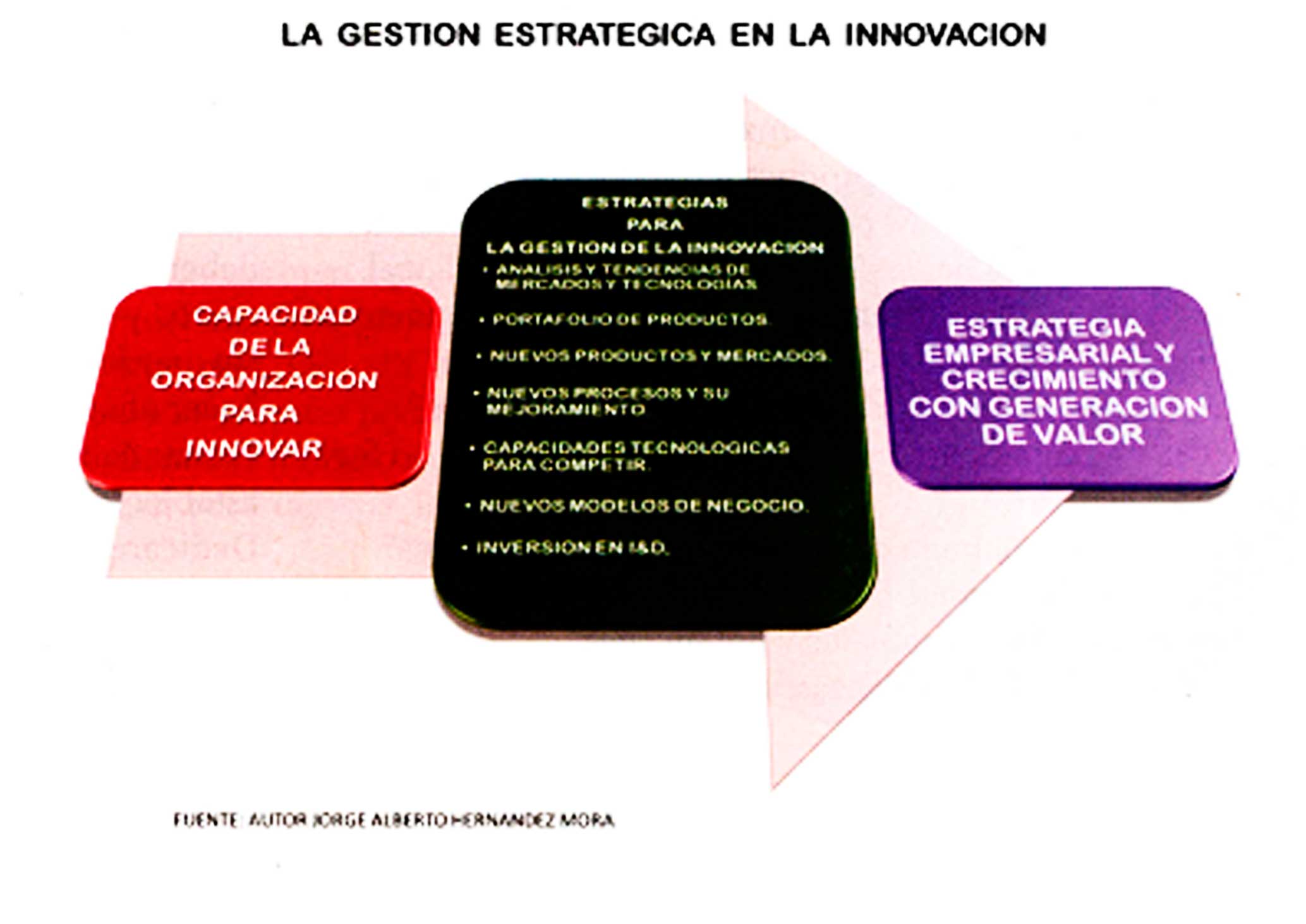 »La innovación se debe convertir en procesos que generan ideas, desarrollan proyectos que permitan ensayarse y someterlos a pruebas en el mercado, hasta convertirla en una actividad rutinaria dentro de la empresa, como una ventaja competitiva. Lo primero que se debe definir es la capacidad que posee la organización para innovar y enfrentar los nuevos retos. Es necesario no solamente que las empresas cambien, ya que no siempre el cambio conduce a un incremento de la competitividad, sino también, una estrategia empresarial definida, en donde la innovación sea un elemento clave para competir. La estrategia de innovación debe cubrir los siguientes aspectos: » Obtener información de oportunidades en mercados actuales que identifique cual y cómo es la forma de acceder con mayores probabilidades de éxito.