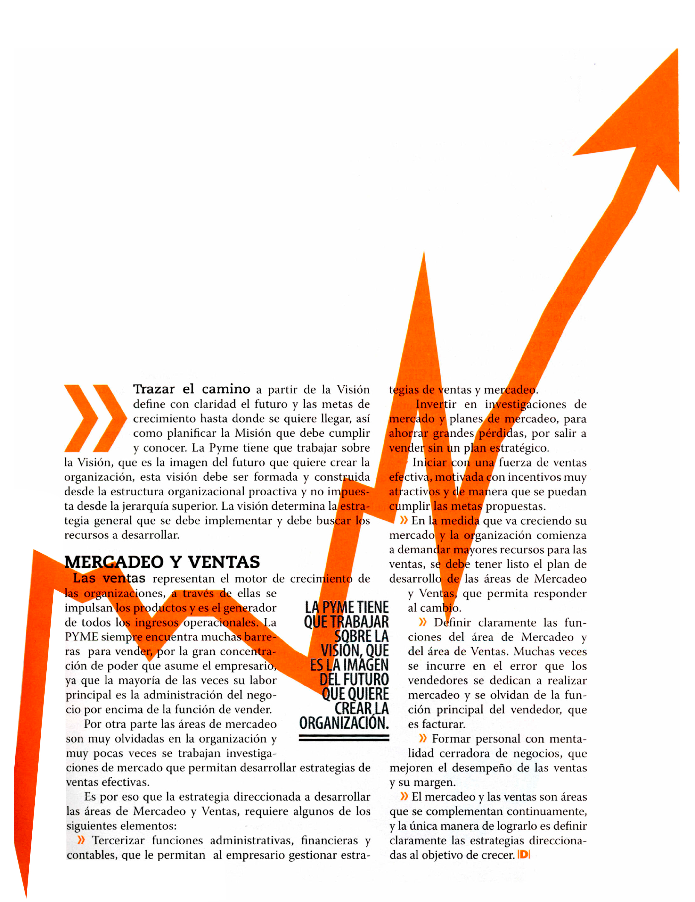 rápidamente hacia otras ciudades principales, resultan quebrándose. Crecer geográficamente es costoso. Conquistar otros mercados representa inmensas oportunidades, pero las empresas deben aprender a medir muy bien los costos y beneficios de estos procesos, sin perder de vista la posibilidad de hacer alianzas estratégicas, y de aprovechar canales de comercialización ya establecidos por otras empresas. Dedicaremos una edición completa a este tema con el fin de ayudar a identificar las estrategias para consolidar los mercados locales y conquistar los mercados externos. IDI