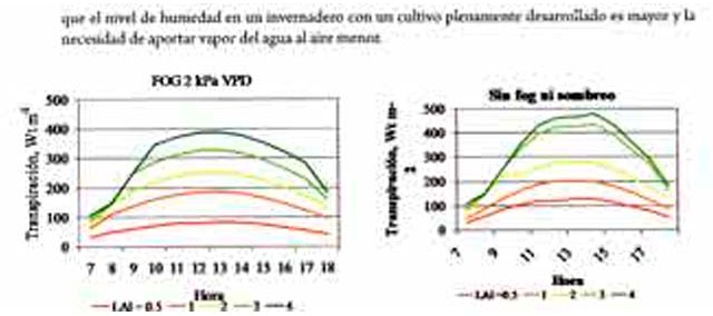 Estos porcentajes incrementadas con la misma luminosidad a acompañado de vientos fuertes y secos y se reduce notablemente en días nublados en los que se deberá disminuir notablemente los niveles de drenaje, e incluso anular los riegos en días muy nublados y con bajas temperaturas.
