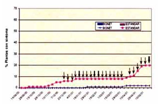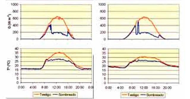 El comportamiento de las mallas en relación a la temperatura, es que no existen diferencias entre la temperatura mínima y la temperatura media del interior y el exterior de la malla. Solo las temperaturas máximas son 2-3°C superiores en el interior de la malla