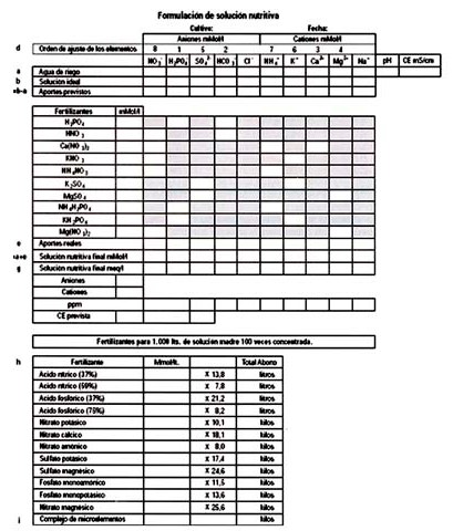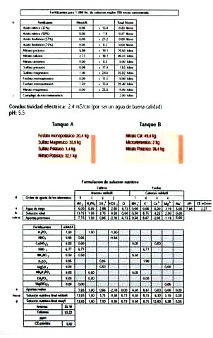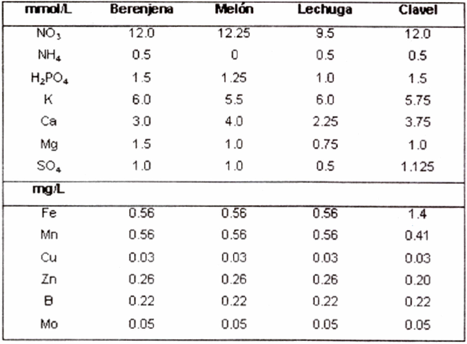 La solución nutritiva, depende principalmente del cultivo, estado fenológico, de la calidad del agua de riego y de las condiciones meteorológicas.