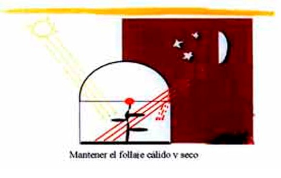 Partiendo de diferentes materiales para crear una estructura, más o menos cerradas con cubiertas transparentes (vidrio o plástico) que permiten la penetración de la radiación solar para crear el llamada "efecto invernadero':
