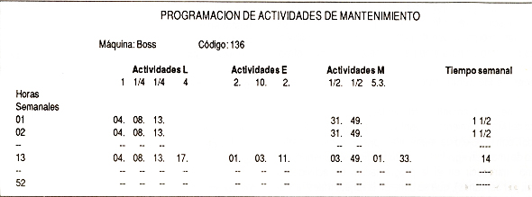 Este programa se fundamenta en el estudio de necesidades de servicio de un equipo, teniendo en cuenta cuáles de las actividades se harán con el equipo detenido y cuáles cuando está en marcha. Además, se estima el tiempo que se toma cada operación y la periodicidad con que se efectúa, con el fin de poder determinar así las horas-hombre que requiere una tarea de mantenimiento, al igual que las personas que se van a emplear en determinados momentos del año.