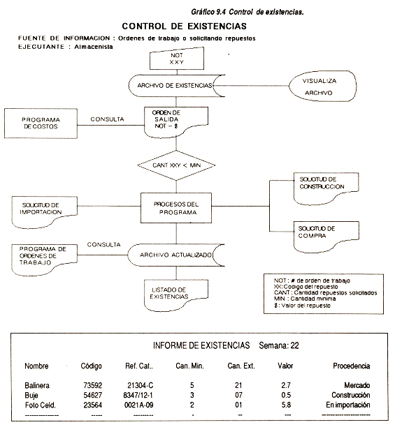 Casi podría afirmarse que el repuesto requerido para solucionar una falla no se encuentra en ese momento en el almacén, por no existir la información de la clase y cantidad de repuestos necesarios. La consecución de estos elementos exteriormente hace que la demora sea mayor y se incrementen los costos. Esta información, al igual que en el caso anterior, se hubiera podido obtener mediante continuas revisiones preventivas.