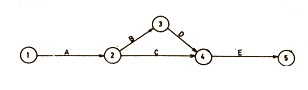 11.3 REPRESENTACION GRAFICALos métodos P.E.R.T. y C.P.M. utilizan representaciones gráficas del proyecto mediante diagramas de flechas con orientación de izquierda a derecha ( ), sobre la cual se le coloca una letra para designarla.Las actividades se hallan separadas unas de otras por los eventos. Los eventos se simbolizan con círculos y rectángulos, dentro de los cuales se coloca un código para designaros.Por ejemplo, en una construcción de maquinaria necesitamos las siguientes operaciones:A. Acopio de material.B .Fabricación de maquinaria.C.Construcción del equipo de embalaje.D.Verificación del control.E.Envíos e instalación.Gráfico 11.1 Ejemplo de una red básica