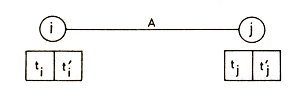 El tiempo flotante total F T i j. es el tiempo total que una actividad puede ser retrasada sin aumentar la duración total del proyecto. Tal rebaso puede ocasionar retraso en las actividades siguientes a la observada, pero no en la terminación del proyecto.Considere el diagrama adjunto donde se localizan secuencialmente los tiempos asociados a los eventos i y j que determinan la actividad i – j.Gráfico 11.3 Tiempos asociados a los eventos