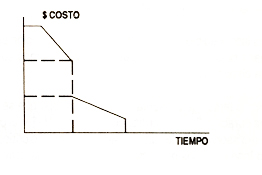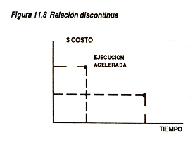 Variación brusca de costo en un momento dado: el caso de un trabajo en cuyo costo se produce un incremento brusco y considerable si se acorta el tiempo, debido a un incremento significativo de los recursos necesarios para esa reducción.