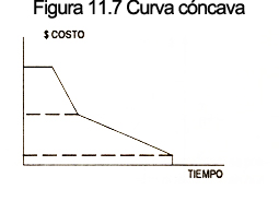 Curva cóncava: caso de una tarea con alguna restricción que impide que el incremento de recursos aplicados produzcan un beneficio proporcionado.