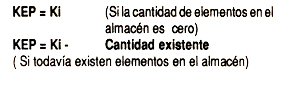 Una forma más exacta de calcular Ep es tener en cuenta las desviaciones o incrementos que se puedan causar por no usar el punto de pedido como Pped = Ke * Ta.Debe entenderse también que estas desviaciones varían como función de la posición geográfica, de la organización de mantenimiento, de las exigencias del pedido y de los detalles de adquisión de cada elemento.Por todo lo anterior, resulta más simplificado tomar Ep = Ke * Ta/4Esta existencia de protección debe tener muy en cuenta la cantidad máxima instalada en un equipo (Ki), ya que si se llega al final de un período y sólo se cuenta con la