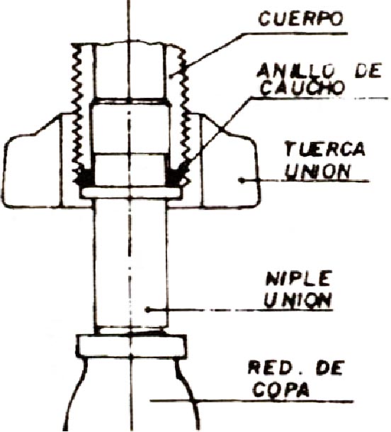 tuerca unión y enrósquelo en la reducción de copa, primero manualmente y termine de ajustarlo utilizando un hombresolo o una llave para tubos número 6.