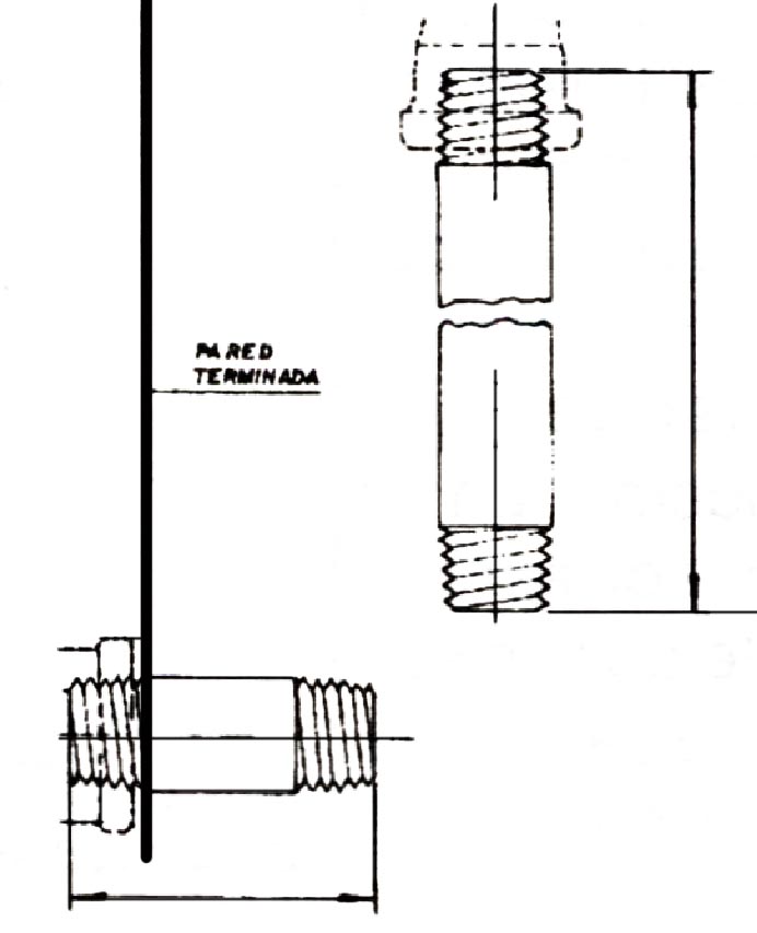 • Si los accesorios de acometida que están entre la pared, son de hierro galvanizado, corte y rosque niples, de una longitud tal, que después de instalados, sobresalgan 4.5 cms. de la pared terminada.
