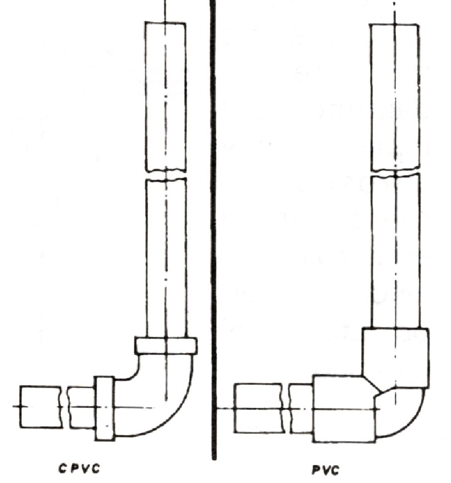 • Suelde los ni pies y accesorios C.P.V.C., con soldadura líquida C.P.V.C., y los niples y accesorios P.V.C, con soldadura líquida P.V.C, formando independientemente, los conjuntos que se ven en la figura.