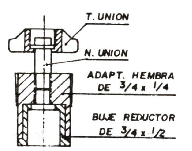 • Aplique cinta de teflón en las rascas de los niples y utilizando un codo de hierro galvanizado de 1/2: forme la pieza que aparece en la figura, ajustando convenientemente con llaves para tubos.